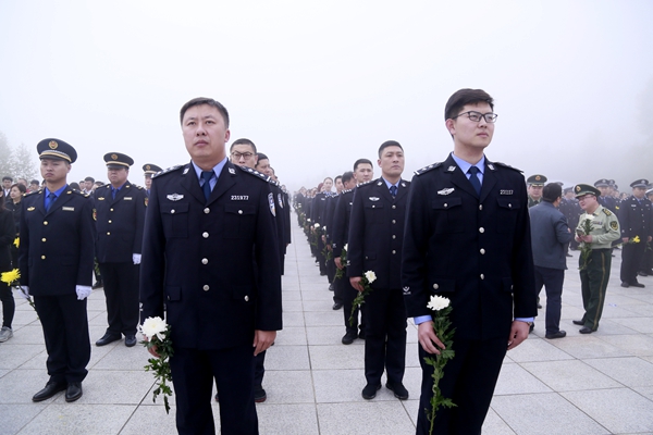 公祭仪式上,干警们同全体参加人员现场合唱了《中华人民共和国国歌》,全体人员脱帽、肃立默哀,少先队员们献唱《我们是共产主义接班人》后向烈士敬献鲜花。