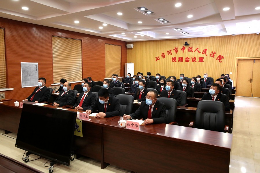 党课采用视频方式进行,各基层法院设视频分会场。中院在家党组成员、副处级干部、各部门负责人和部分党员干警参加学习。