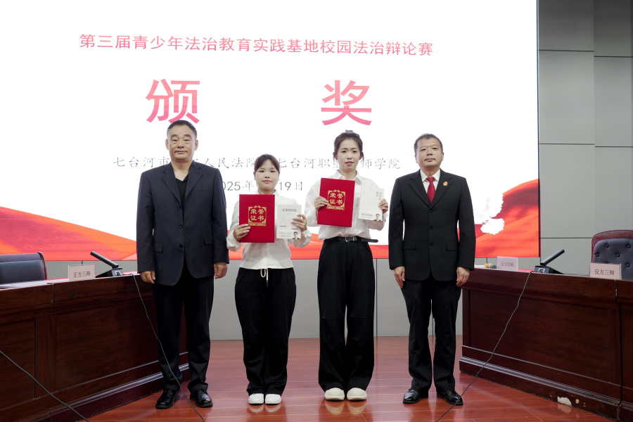为加强法治宣传教育,提升青少年法治素养,近日,七台河市中级人民法院联合七台河职业技师学院开展第三届青少年法治教育实践基地校园法治辩论赛。七台河职业技师学院副院长楚绪刚、七台河市中级人民法院审判委员会专职委员关勇出席本次活动。