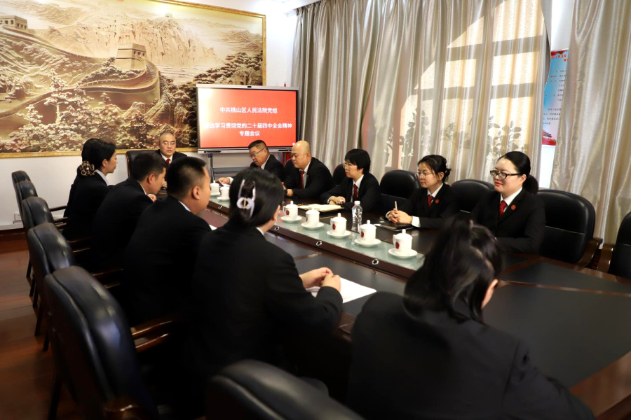 桃山区人民法院召开党组(扩大)会议,传达学习了党的二十届四中全会精神,研究部署贯彻落实举措。会议要求,要深刻认识党的二十届四中全会的重大政治意义、理论意义和实践意义,认真学习领悟全会提出的新思想新论断、作出的新部署新要求,找准人民法院履职的切入点和着力点,提高政治站位,掀起全会精神学习热潮,聚焦主责主业,推动全会精神落实落地,抓实自身建设,坚持全面从严管党治院,以全面履职、勇于担当的实际行动,在服务大局、保障民生、维护正义、护航高质量发展中充分展现新时代司法新作为。