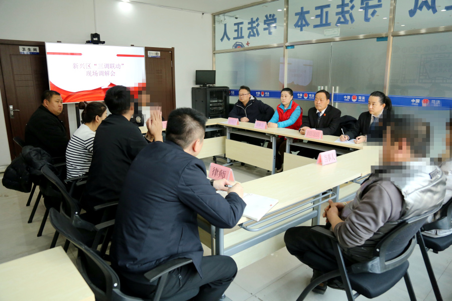 入驻综治中心,法官的首要角色是“调解专家”与“法律顾问”。依托综治中心这一多元共治平台,联合辖区派出所、司法所、街道办形成调解合力。在人身损害赔偿纠纷及衍生的行政争议案件中,新兴区法院法官协同公安、司法、街道等单位现场调解,先解“气”再解“法”,当天便达成调解协议,不但化解了民事纠纷也化解一起行政争议,以柔性司法为群众排忧解难,彰显了“先行调解+多元共治”的矛盾化解效能。